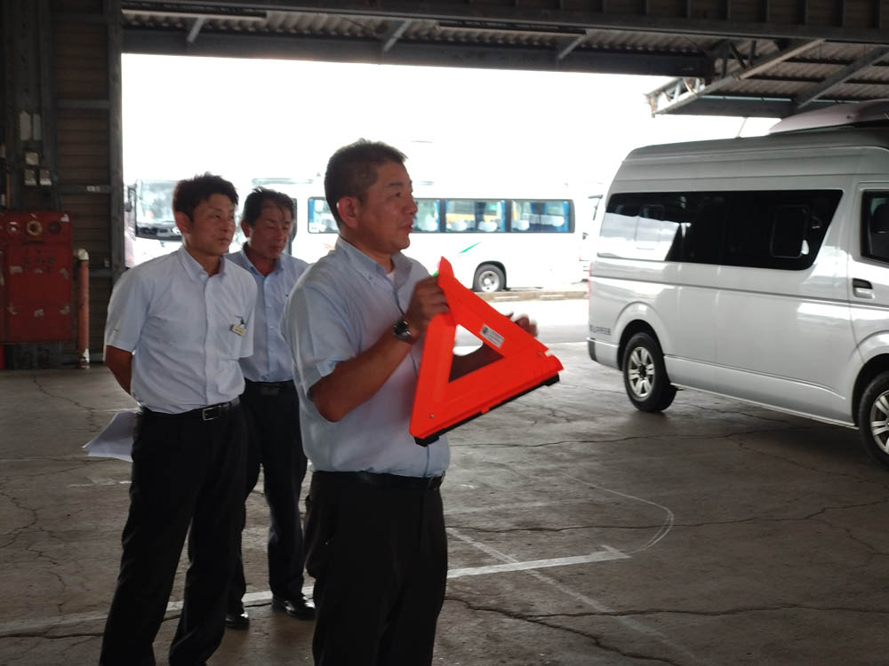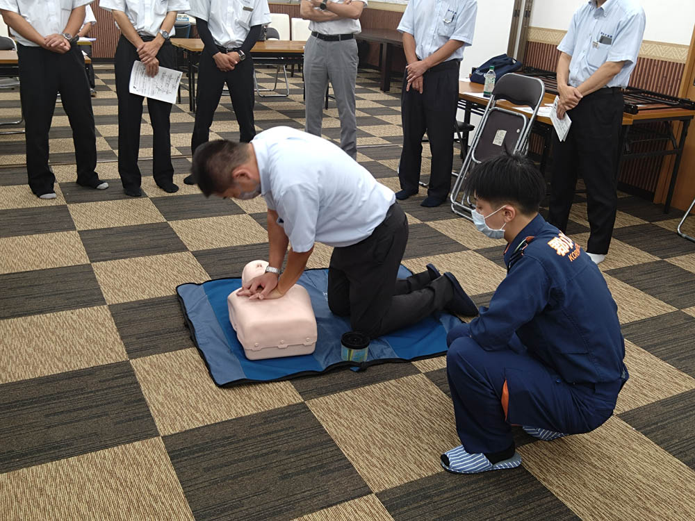 午前中には実際の運行の映像記録を基にした危険予測の講習を実施したほか、心臓マッサージやAEDなどの一次救急救命の実習等を行い、普段の運行中に発生し得る不測の事態に対して対応できるよう、また油断や確認不足から生まれるトラブルを未然に防ぐようになるための訓練を実施しました。